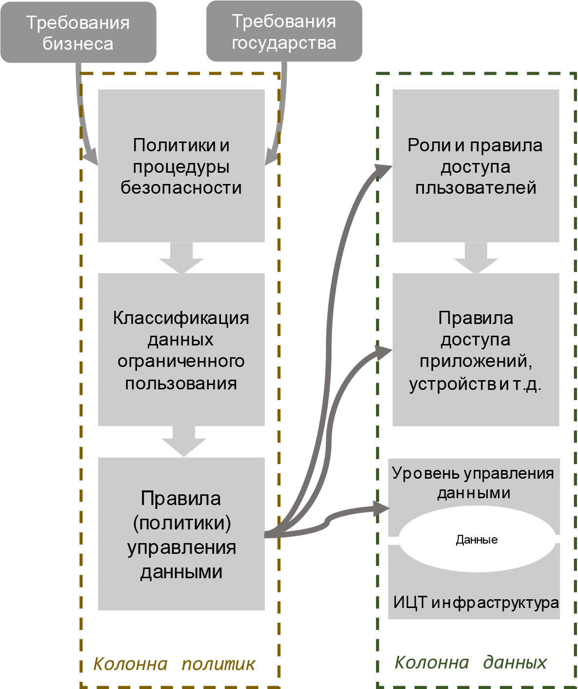Сервисы ИБ и обеспечивающие их технологии могут (должны) быть выделены в отдельные интерфейсы, прямо поддерживающие политики управления данными;
